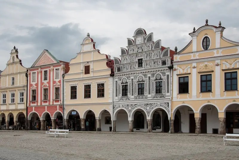 特爾奇像是童話書翻開的第一頁:粉彩色的小屋一字排開,尖尖屋頂下藏著小店與咖啡館,怎麼拍都充滿童趣。走進小鎮中心,就像誤闖色彩繽紛的文青樂園。