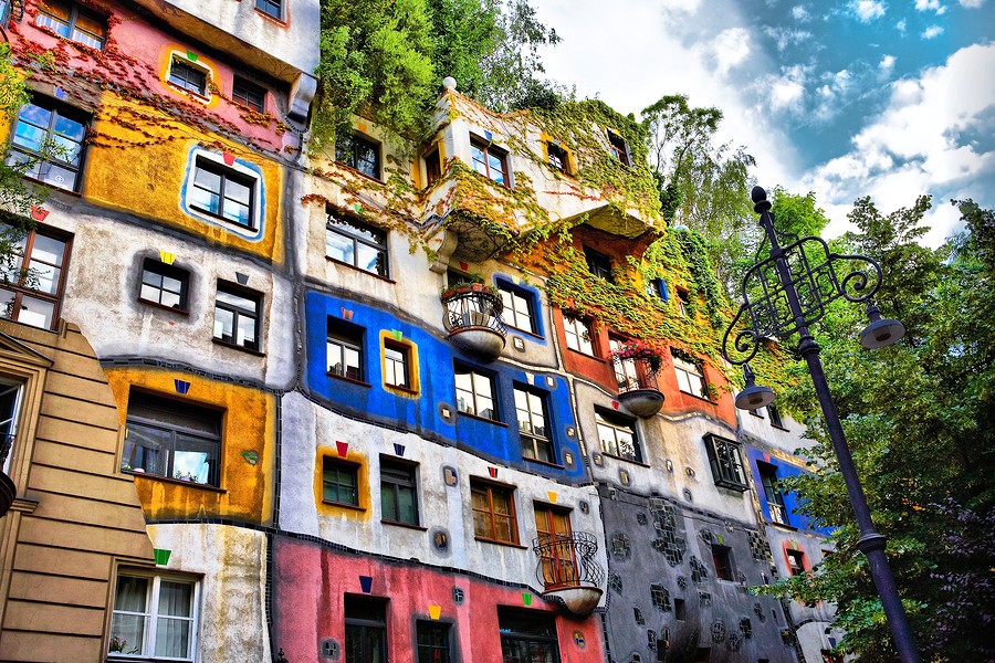 此公寓為 1977 年維也納市長委託有「奧地利高第」之稱的百水先生設計,從外觀到內裝,天花板到地板都不是統一規格,每扇窗戶造型也都不相同,目前仍有當地居民居住在此地。百水公寓不僅是當代藝術的傑作,也是維也納現代建築的代表。